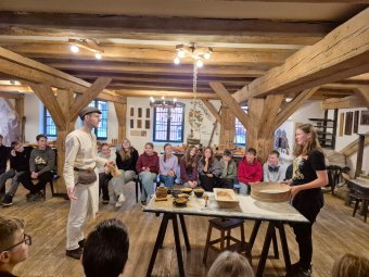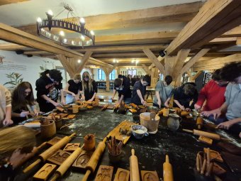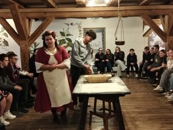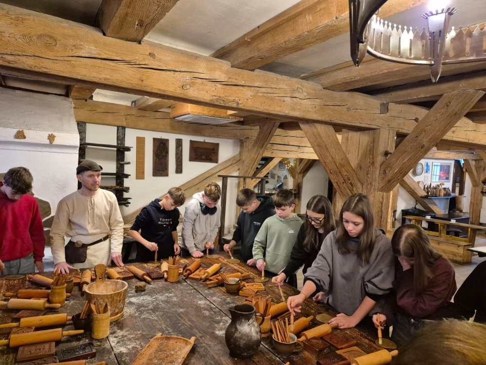 Sama tradycja Torunia zobowiązywała do wzięcia udziału w warsztatach w Muzeum Piernika. W korzennym królestwie, w którym historia przeplata się z aromatem cynamonu i goździków, uczniowie poznali sekrety toruńskich pierników. Każdy miał okazję zmierzyć się z wykonaniem własnych pierników według średniowiecznej receptury. Po zakończonych pracach udaliśmy się na Rynek i Stare Miasto. Odwiedziliśmy i poznaliśmy historię między innymi: Mikołaja Kopernika, “katedrę św. Janów”, najstarszy i najważniejszy kościół Torunia, mury obronne miasta wraz z Bramą Mostową oraz Basztę Wartownie, której częścią jest tzw. Dwór Mieszczański. Wycieczkę zakończyliśmy na Świątecznym Kiermaszu.
