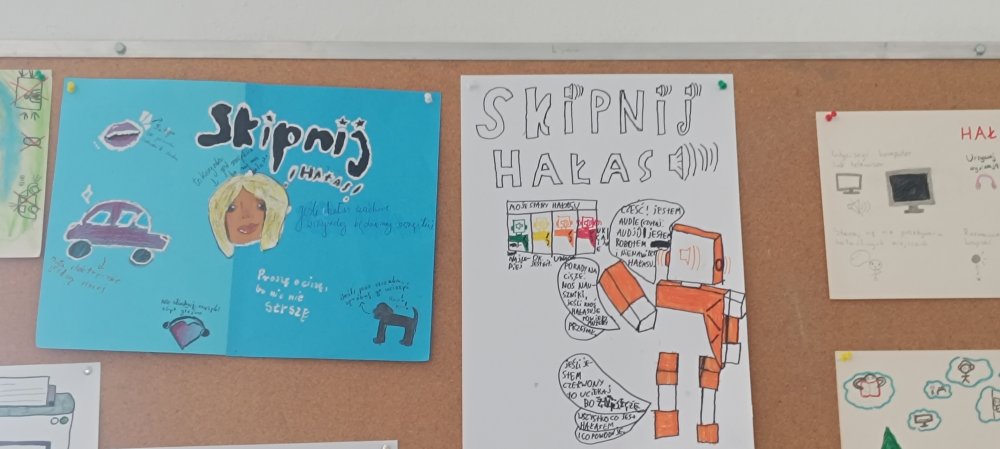 W naszej szkole trwa realizacja projektu „Skipnij Hałas”, którego celem jest zwiększenie świadomości na temat wpływu hałasu na zdrowie, poprawa komfortu nauki i odpoczynku w czasie przerw oraz wdrażanie zasad sprzyjających spokojnym przerwom.