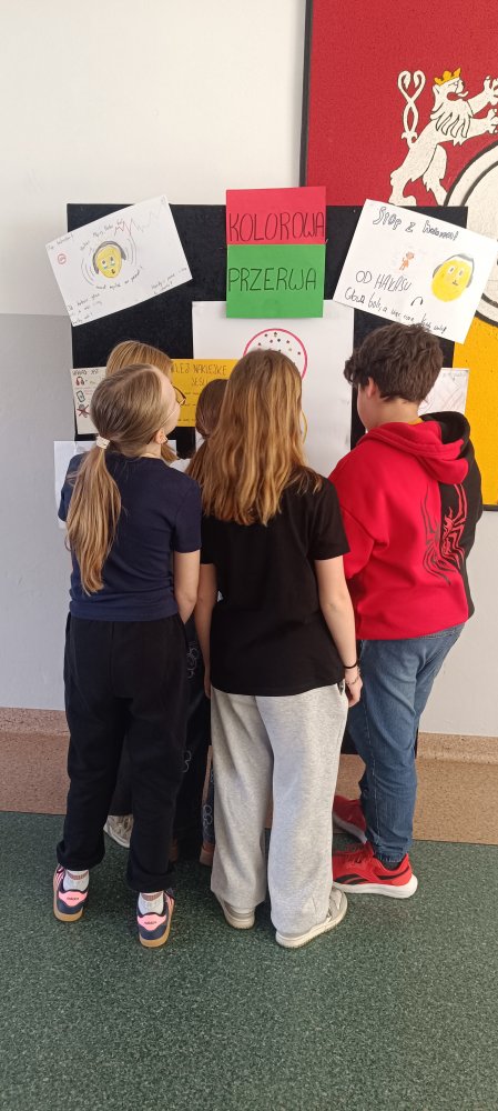 Zakończyliśmy już drugi tydzień akcji „Kolorowa przerwa”. Wyniki przeprowadzonych obserwacji i ankiety korytarzowej pokazują, że większość uczniów uważa przerwy w szkole za głośne. To ważny sygnał, który pokazuje, jak bardzo potrzebne są działania zwiększające naszą wspólną świadomość.