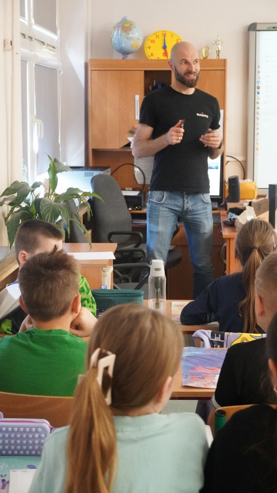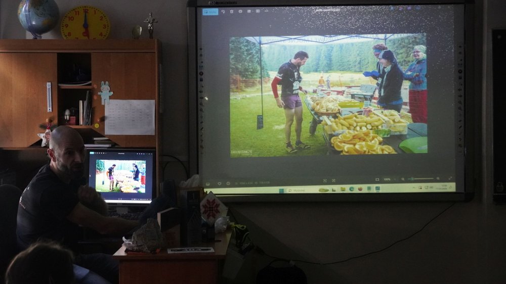 Można i warto biegać po górach - właśnie do tego delikatnie namawiał (oraz baaardzo ciekawie opowiadał) dzieciom w klasie 3a w ramach zajęć świetlicowych p. Michał Jurek - pasjonat tego sportu.