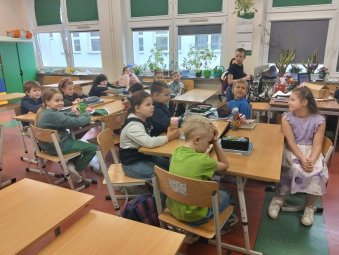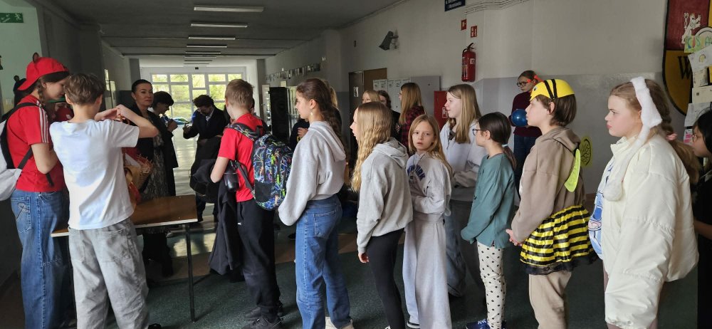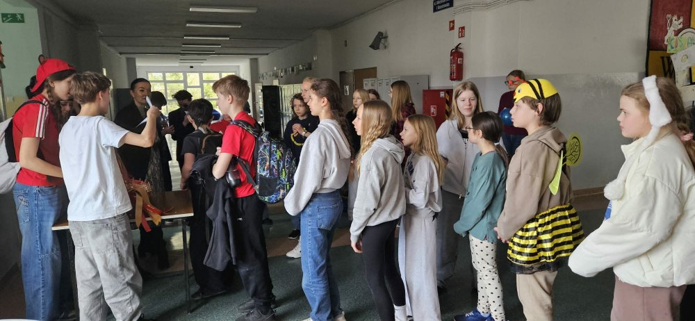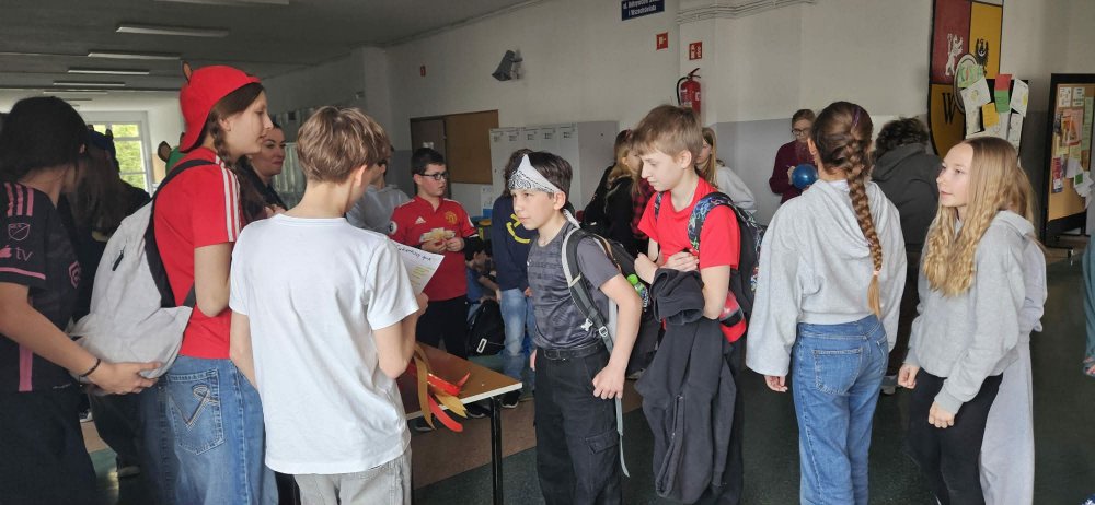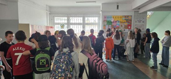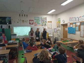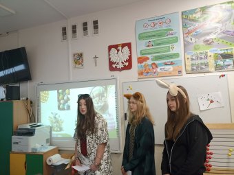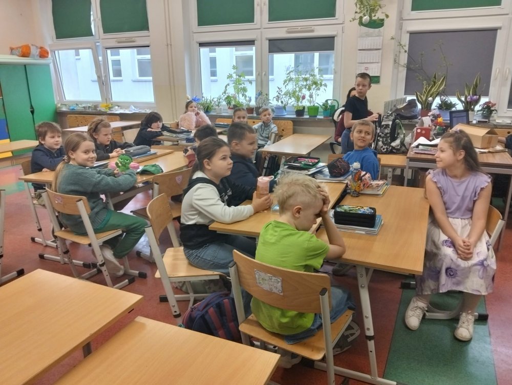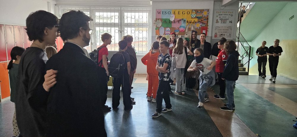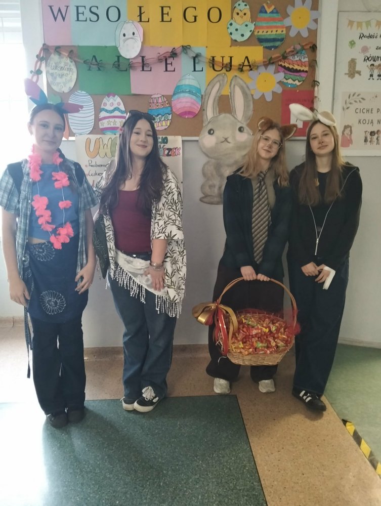 Pokazali im przygotowana specjalnie dla nich prezentację o tradycjach Wielkanocnych i poczęstowali słodyczami. Zarówno uczniowie klas starszych jak i młodszych chętnie angażowali się w zabawy.